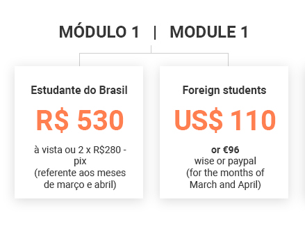 Atenção: você pode se inscrever apenas no Módulo 1 e decidir o Módulo 2 ao final do percurso.